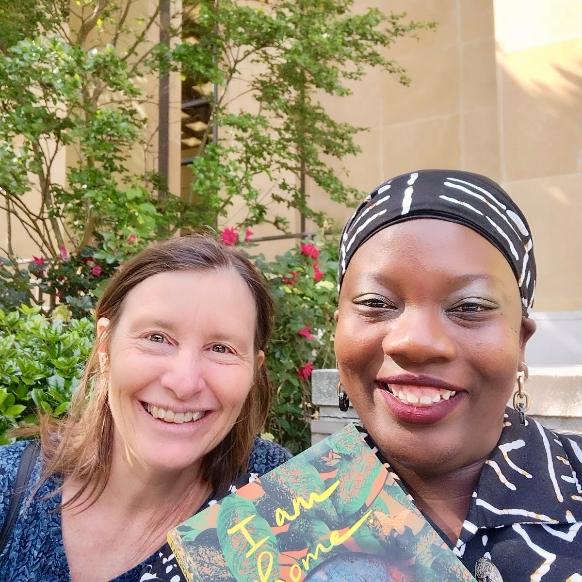 I am home. in #Richmond, #Virginia! with #friends. As the book connects worlds… I met artist Kirana Stover in #Sitges, Spain, in 1997 and then I met poet Lauren Alleyne in #Dubuque in 2012. In 2023, Kirana went to Richmond to be near her #mother in #hospice (like what happens in I am home.) and Lauren went to Richmond as a keynote speaker for a #poetry celebration (she is now the director of #furiousflowerpoetrycenter at #jamesmadisonuniversity ) … and while I was staying at Kirana’s home in Spain, I noticed a JMU cutting board and learned that Kirana’s mother went to JMU… so Kirana went to hear Lauren speak and loved her and she presented her a copy of #iamhome and Lauren sent me (in Barcelona) this picture