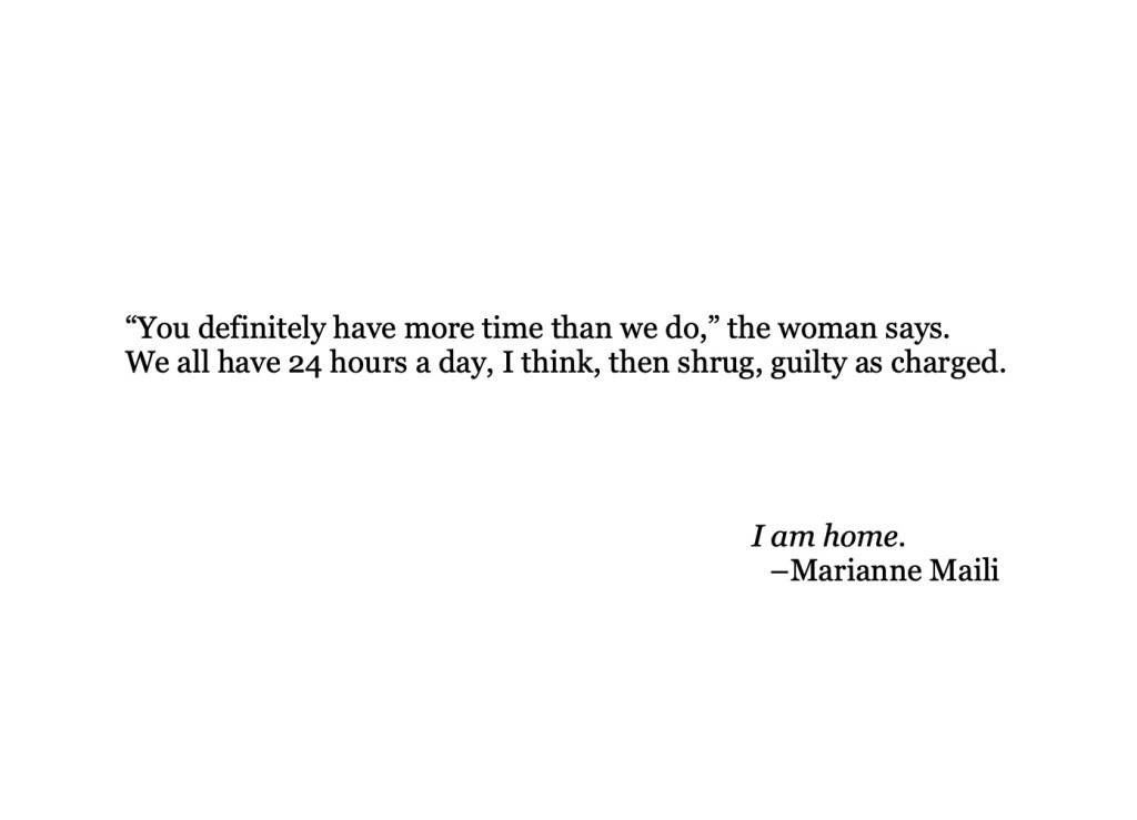 Posted on August 22, 2023 by Marianne MailiI am home. in time. More from KK’s Scintillating Sentences list. IndieBound Amazon Barnes&Noble Share this: Click to share on Facebook (Opens in new window) Facebook Click to share on LinkedIn (Opens in new window) LinkedIn Click to share on X (Opens in new window) X Like Loading... Related