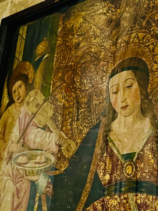“Holy Hell!” is what I said aloud when I looked at the portrait of St. Agatha holding her breasts on a platter in a chapel dedicated to her within the Royal Palace in Barcelona. It was my introduction to her so I did some research and found out how the story goes. Born in Sicily around 231 AD, she became a consecrated virgin, meaning she chose to dedicate her life to God instead of a man. Later she became a martyr. This was after Quintiamus, a supposed diplomat, was enraged by her refusal to marry him and her rejection of his advances. He ordered her breasts cut off as punishment, then imprisoned her and tortured her in many ways, while she remained true to herself. Legend has it that while she was imprisoned, she was healed and her breasts restored and the Q man, further enraged, ordered her burned alive. That is how she died in 251 AD at the age of 20.