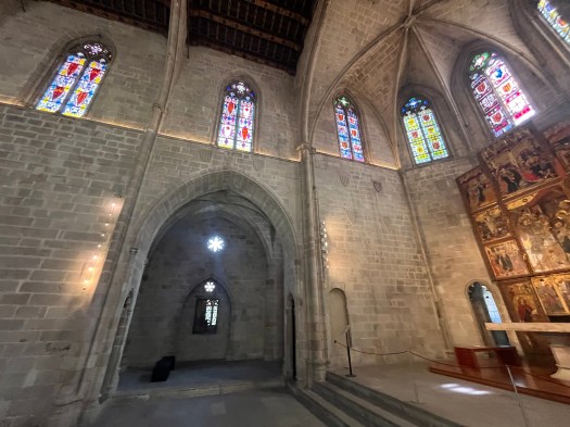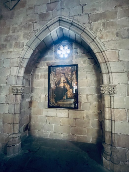 Thinking about some of the narrator’s relationships with men in I am home. I felt a kinship with Agatha and spent time there enjoying the energy in that space near her portrait and the alcove, talking to her about courage and integrity, and telling her about experiences with refusing men almost two-thousand years later. I looked for a sign noting it was her chapel, for a sign about the painting and her life, looked for the painter’s name to no avail, and noticed on all signage of the chapel there was no mention of Agatha on the premises other than her name painted in the halo around her head. An internet search on St. Agatha’s Chapel will turn up St. Agatha’s Royal Chapel, and more. Yet, for some reason, mention of her story is omitted within this inspiring and beautiful space. I asked a woman who was touring the chapel if she knew about her and her story and after she shook her head, I told her what I knew. She then bowed before Agatha’s portrait. I wondered why there were no pews in the nave, no place to rest, other than a few low square stools off to the sides in the alcoves placed in front of televisions to watch videos about Barcelona. No mention of Agatha there, either. I slid one of the stools in front of Agatha’s portrait and under the center point of the vaulted ceiling and let all that energy charge me. I felt at home.